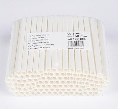Slamky rovné papierové 15cm 8mm biele 100ks